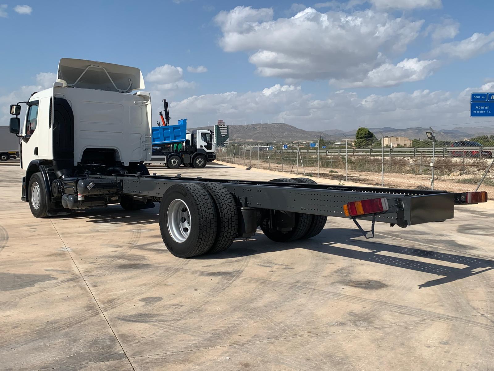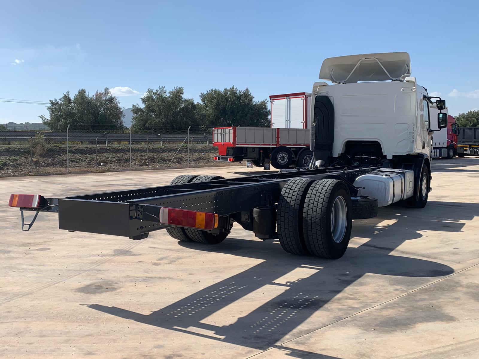 Dispone de cambio automatico, normativa euro 6, suspension neumatica integral, chasis con opcion de carrozado a cualquier medida y tipo (caja abierta, caja cerrada, basculante, etc...)